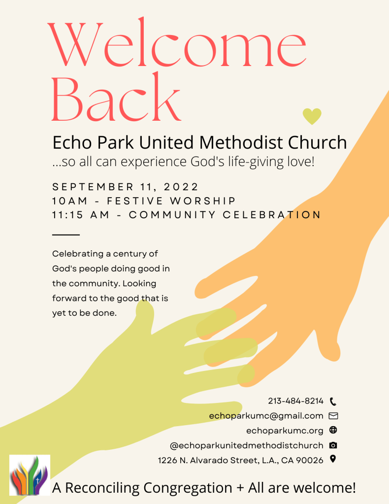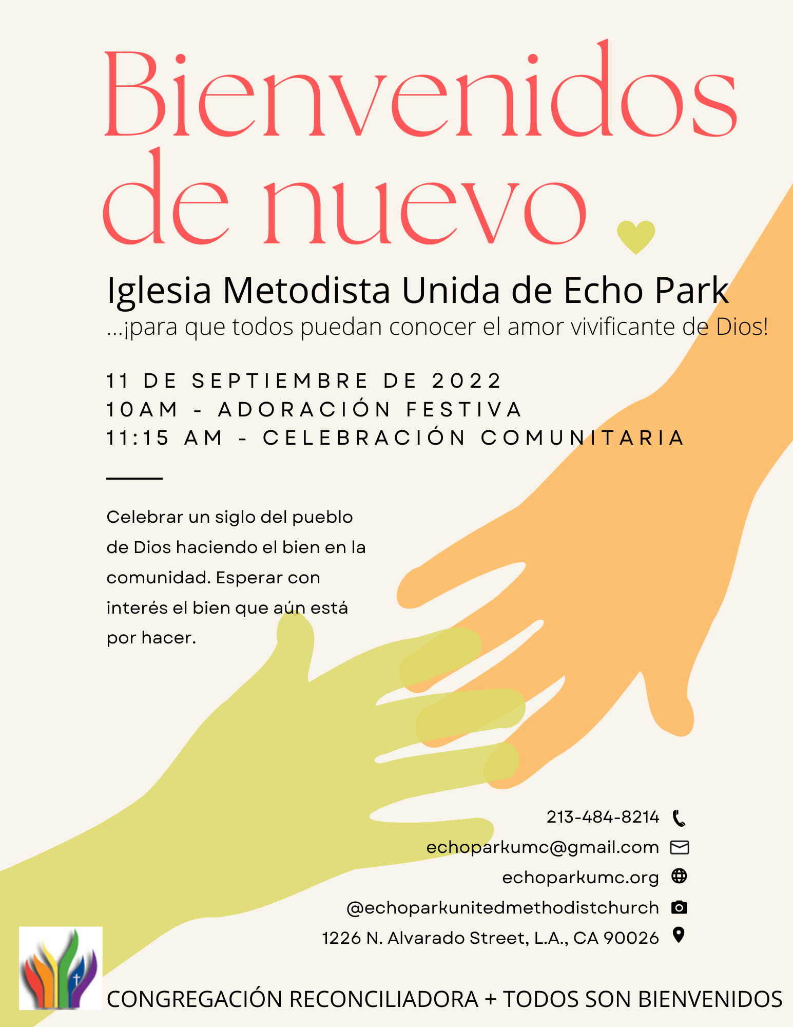 JOIN US FOR OUR WELCOME BACK SUNDAY + ÚNANSE A NOSOTROS PARA NUESTRO DOMINGO DE BIENVENIDA