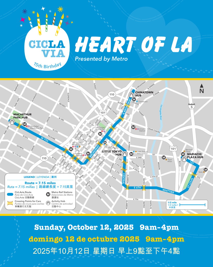 El domingo 12 de octubre, LA Metro patrocinará CicLAvia – Heart of LA. Esto resultará en una serie de cierres de carreteras en el centro y el este de Los Ángeles. Todavía será posible conducir para adorar en La Plaza UMC a las 10:30 a.m. y en Echo Park UMC a las 2:00 pm, pero deberá pensar con anticipación en su ruta.
