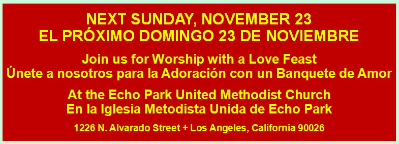 Nos reunimos como una iglesia en las tierras ancestrales no cedidas del pueblo Gabrielino-Tongva. Reconocemos con respeto a este pueblo como los cuidadores tradicionales de esta tierra y honramos su presencia continúa entre nosotros. Estamos agradecidos por la oportunidad que se nos ha dado de reunirnos en esta tierra para la adoración y el compañerismo.